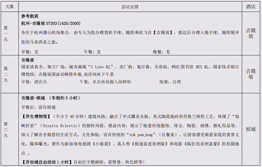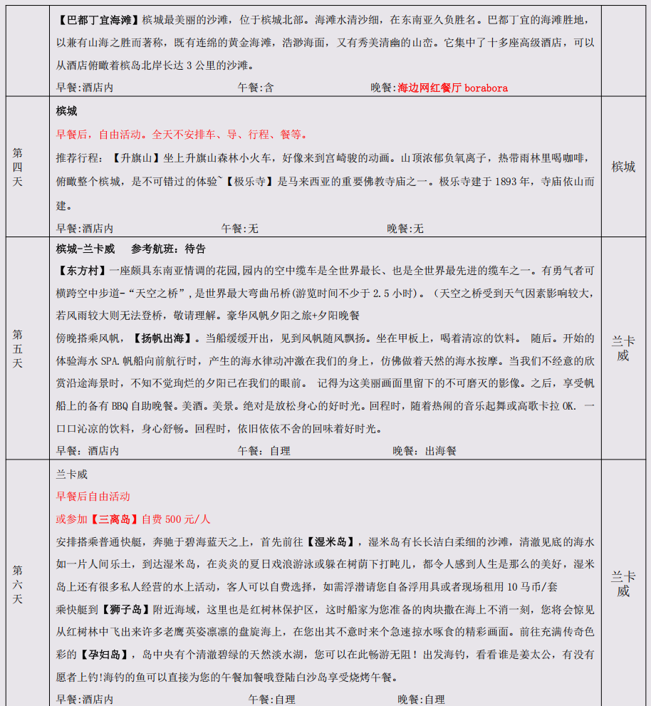 3.用餐:行程中团队标准用餐,(中式餐或自助餐或特色餐,自由活动期间用餐请自理;如因自身原因放弃用餐,则餐费不退)。