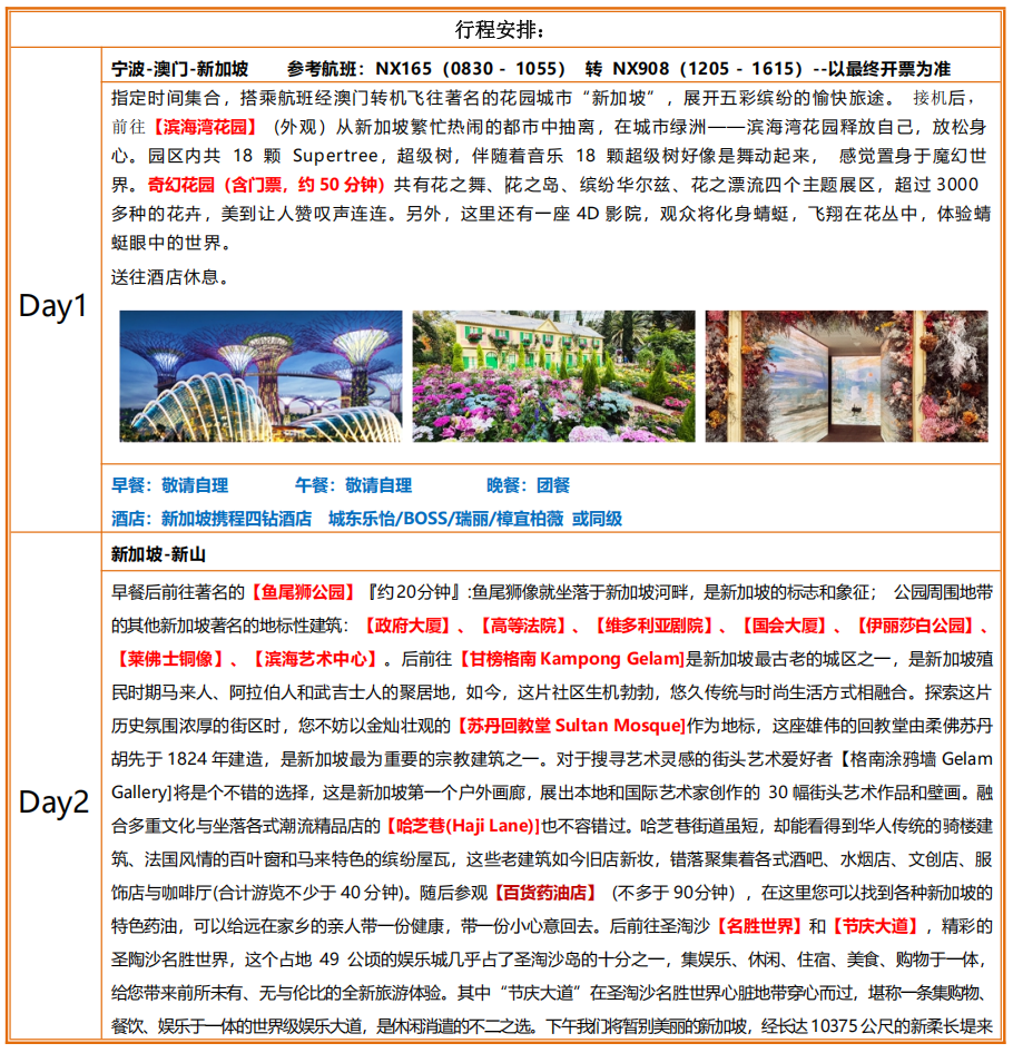 ● 宁波--澳门--吉隆坡/新加坡往返经济舱(含税)