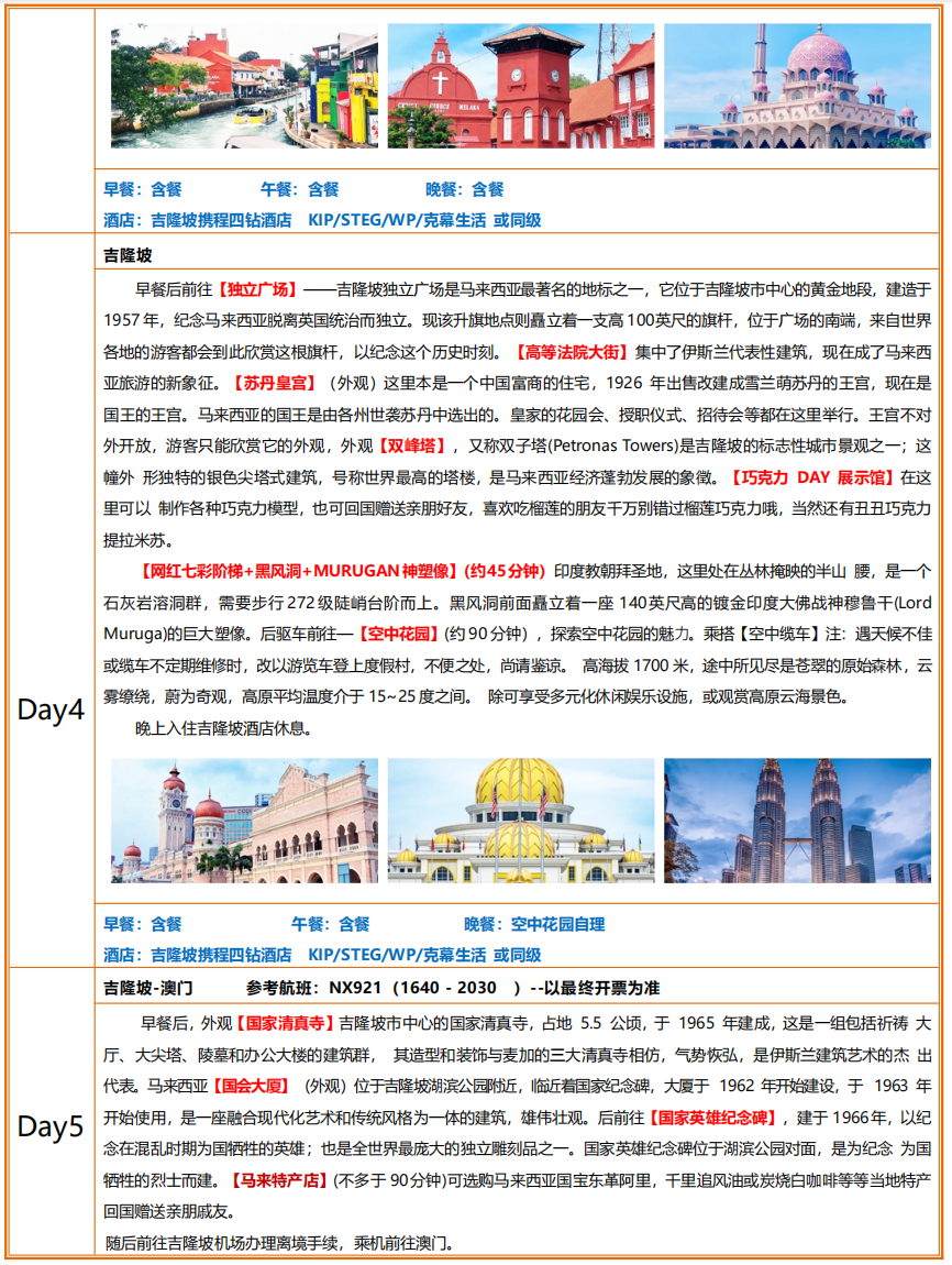 ● 不含司机导游小费80元/人+酒店税10马币/晚/间(当地现付,以实际支付为准)