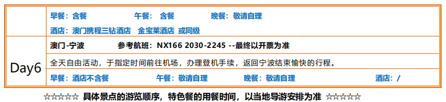 ● 新马段携程四钻住宿酒店,澳门携程三钻住宿酒店(以两人一房为标准);