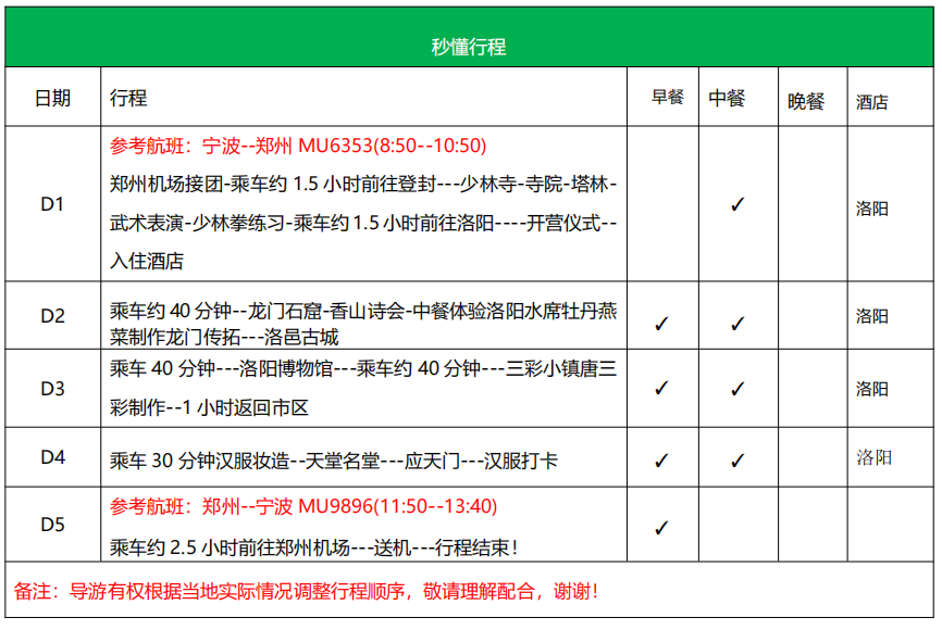 7、因产品为全国大散拼,游客离开河南的时间不尽相同,